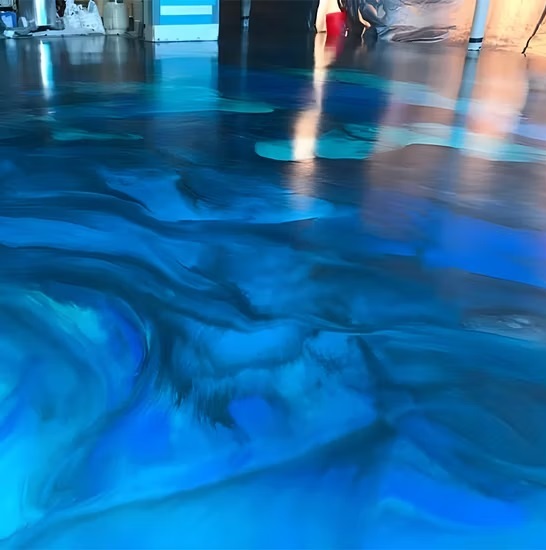 Metallic epoxy flooring is a type of decorative flooring system that combines epoxy resin with metallic pigments to create a unique, glossy, three-dimensional effect on the floor surface. It is often used in residential, commercial, and industrial settings since it provides a strong, durable, and visually attractive finish.